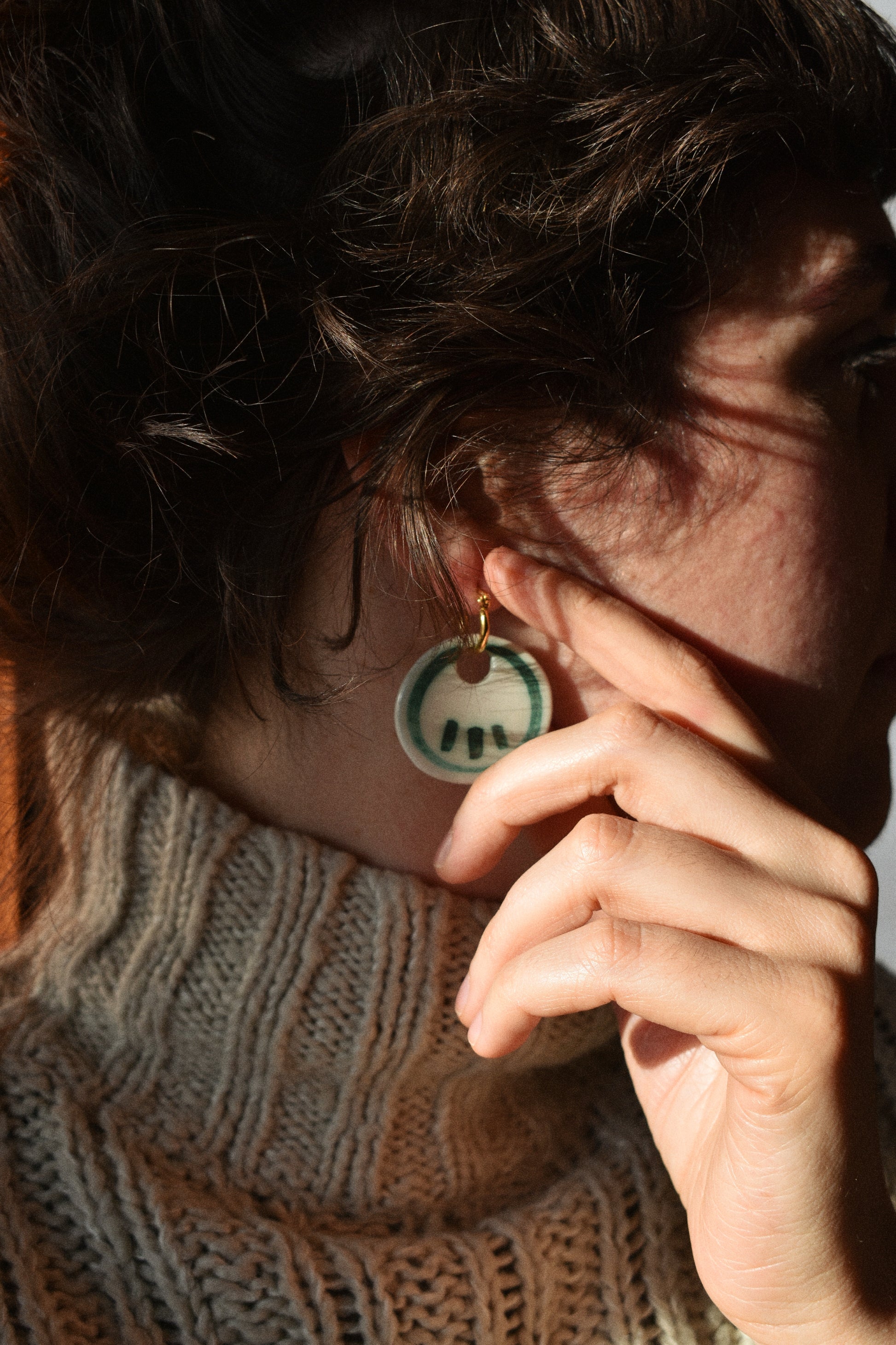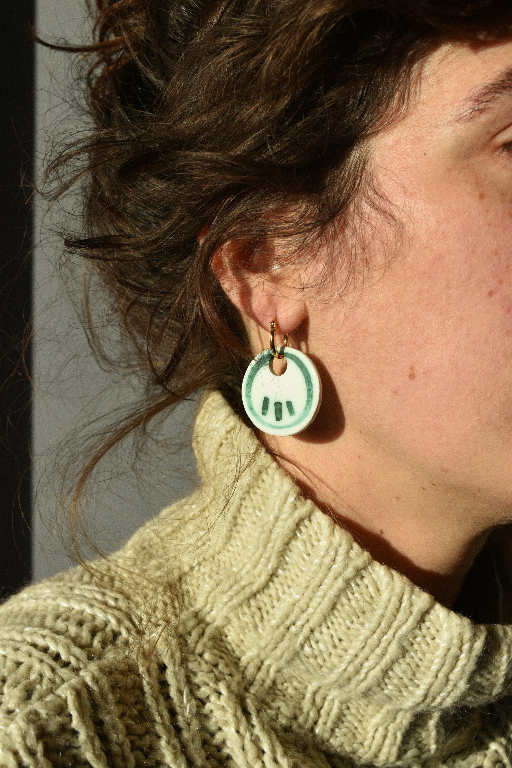 Orecchini in terraglia bianca dipinti a mano, cerchio oro 15mm