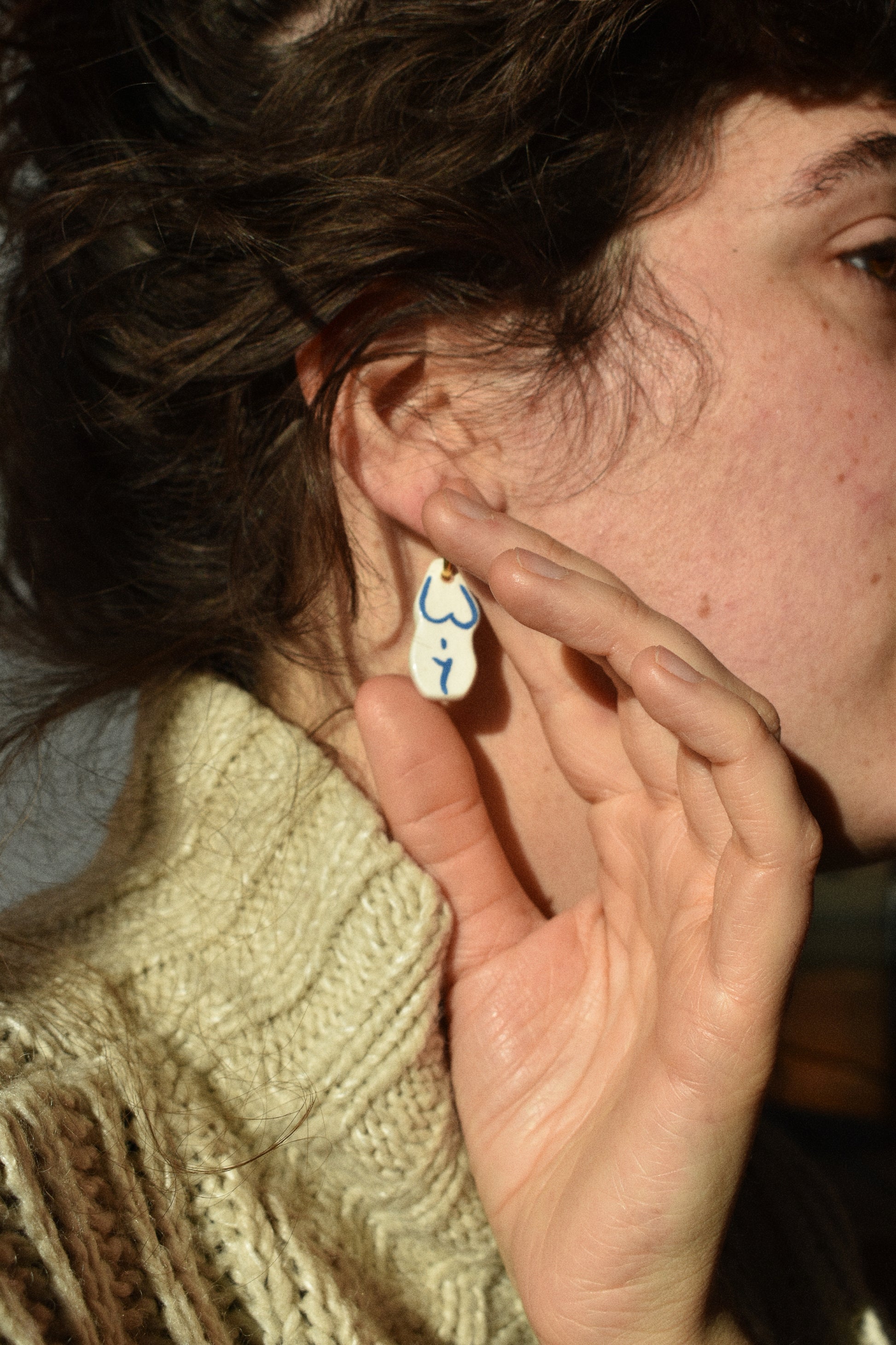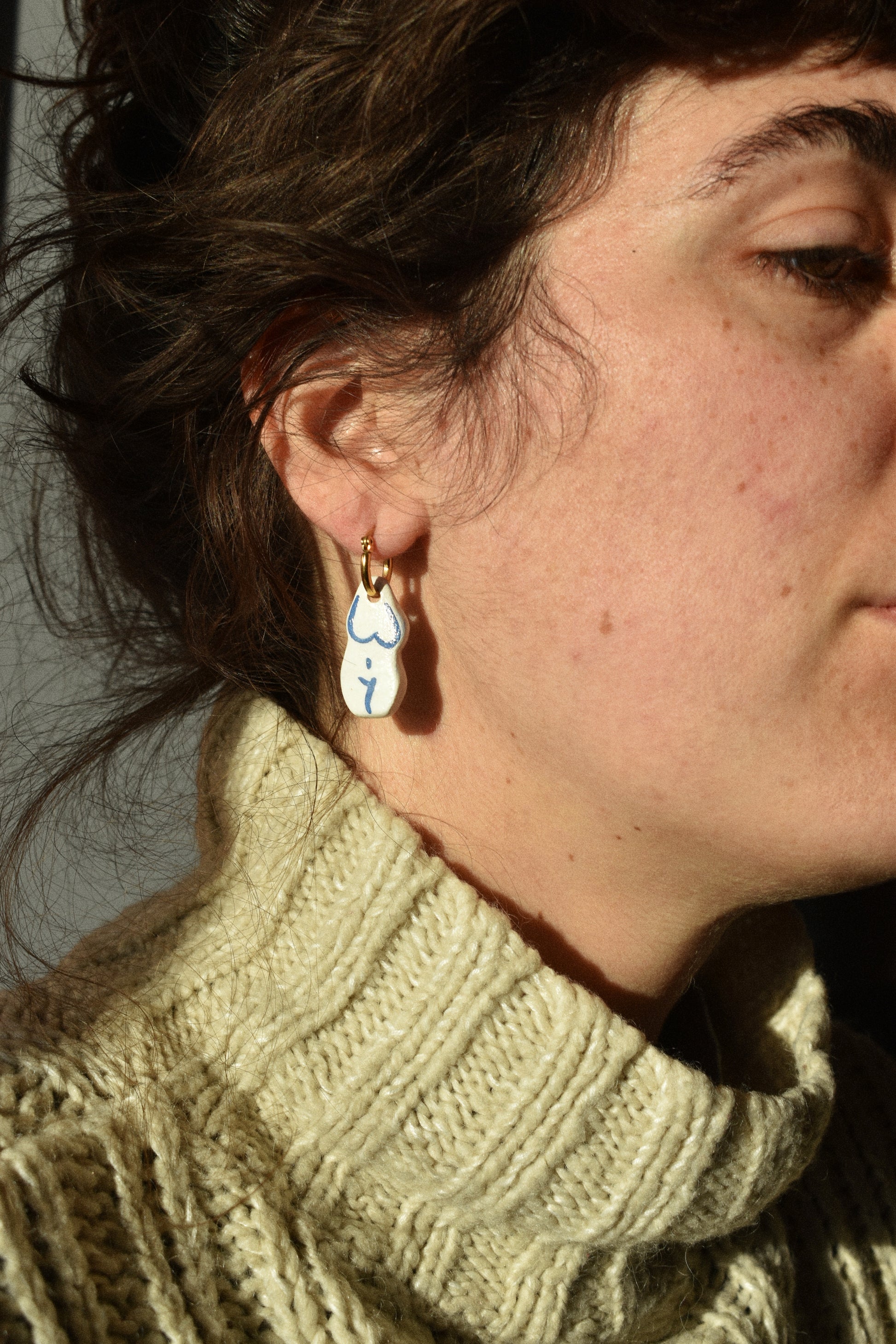 Orecchini in terraglia bianca decorati a mano, cerchio oro 15mm