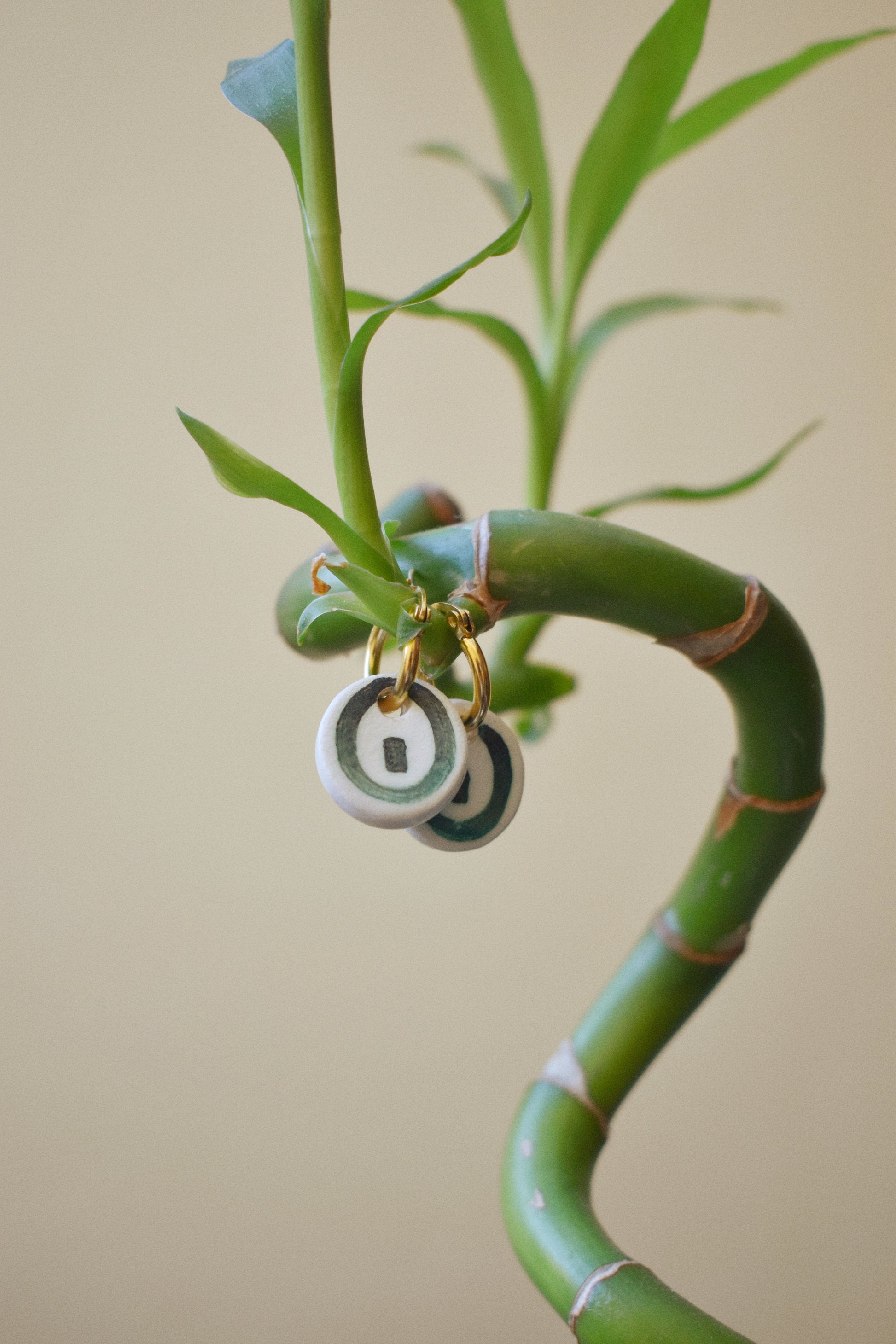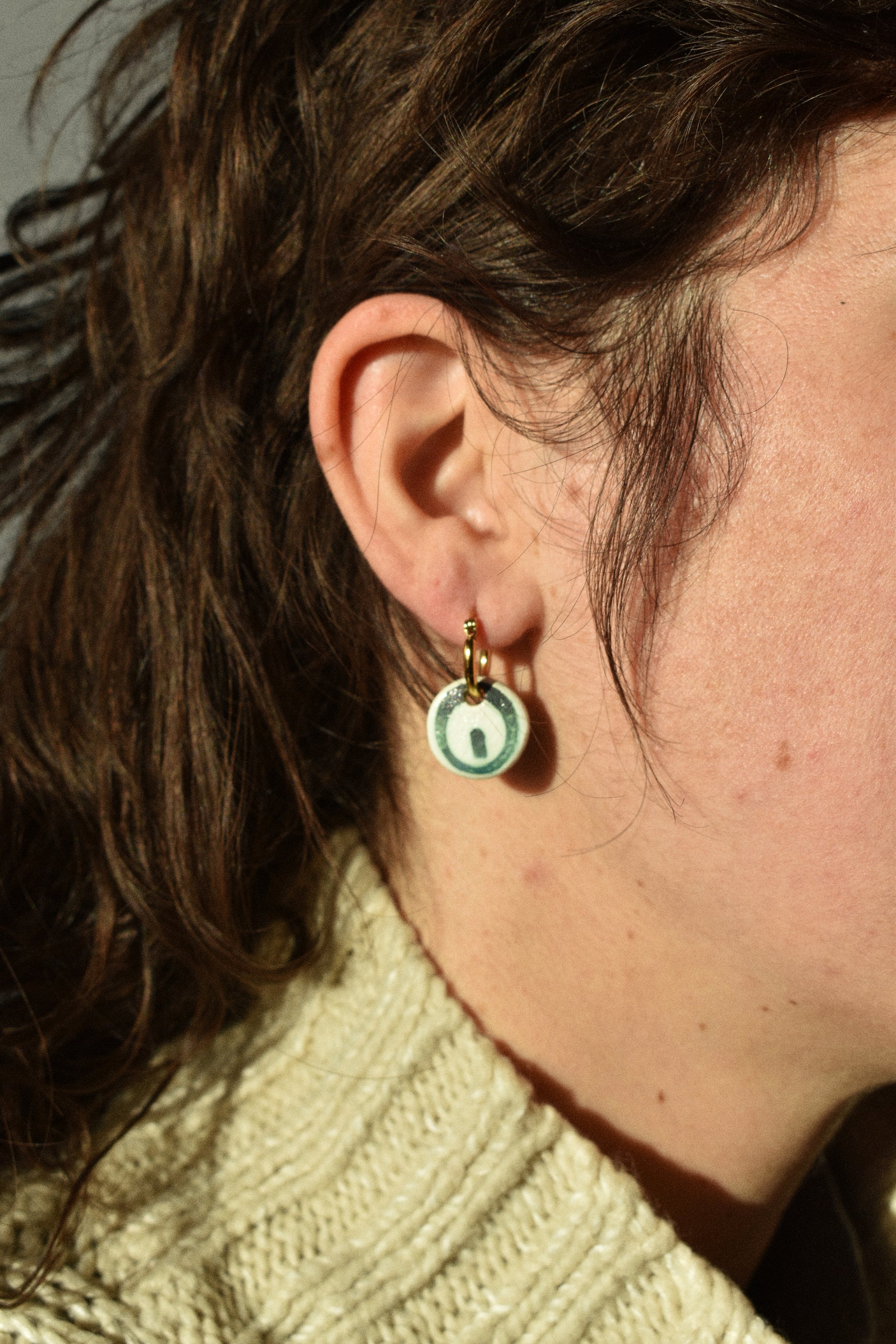 Orecchini in terraglia bianca dipinti a mano, cerchio oro 15mm