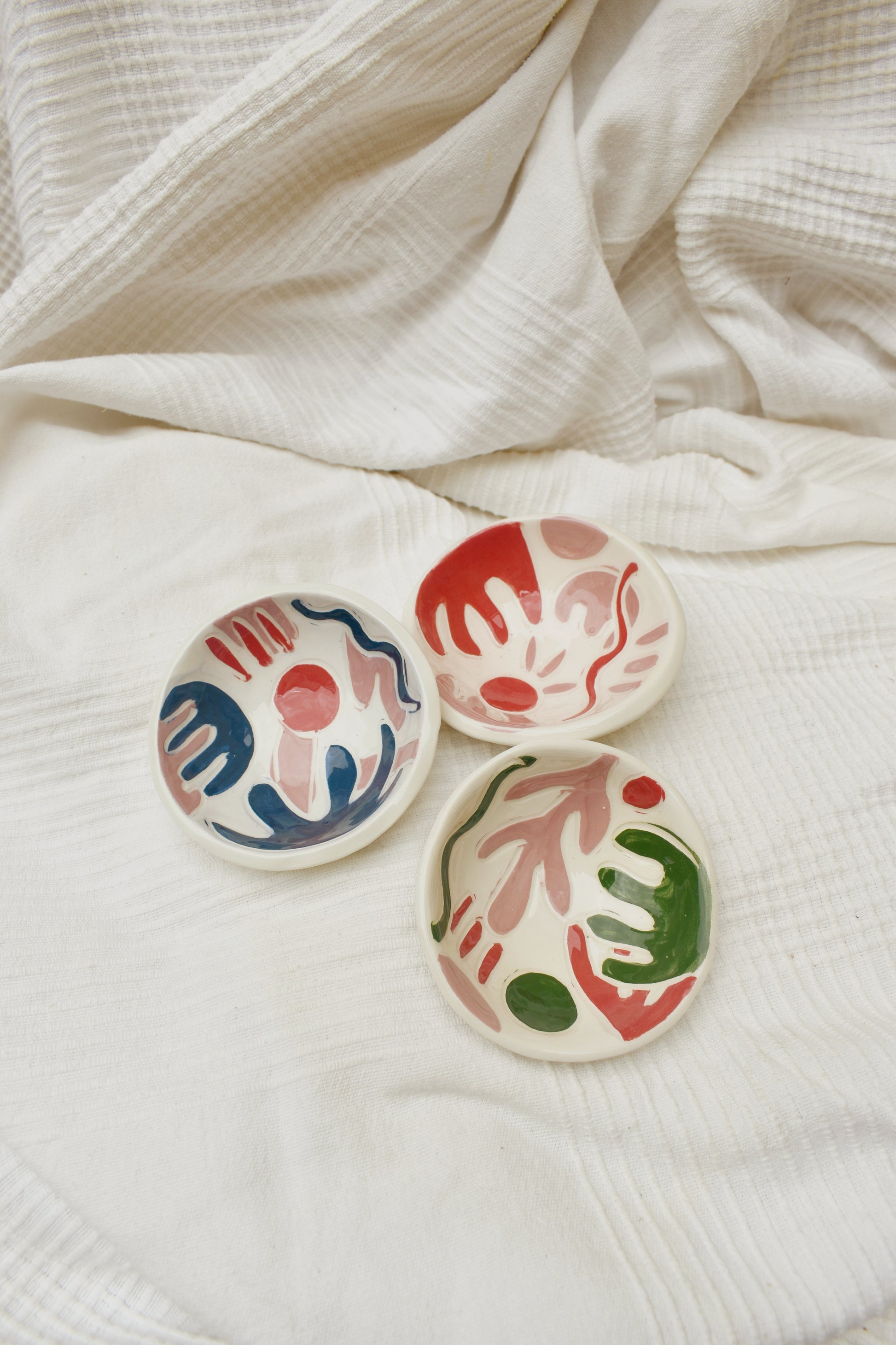 Set da 3 ciotole realizzate in terraglia bianca decorate a mano