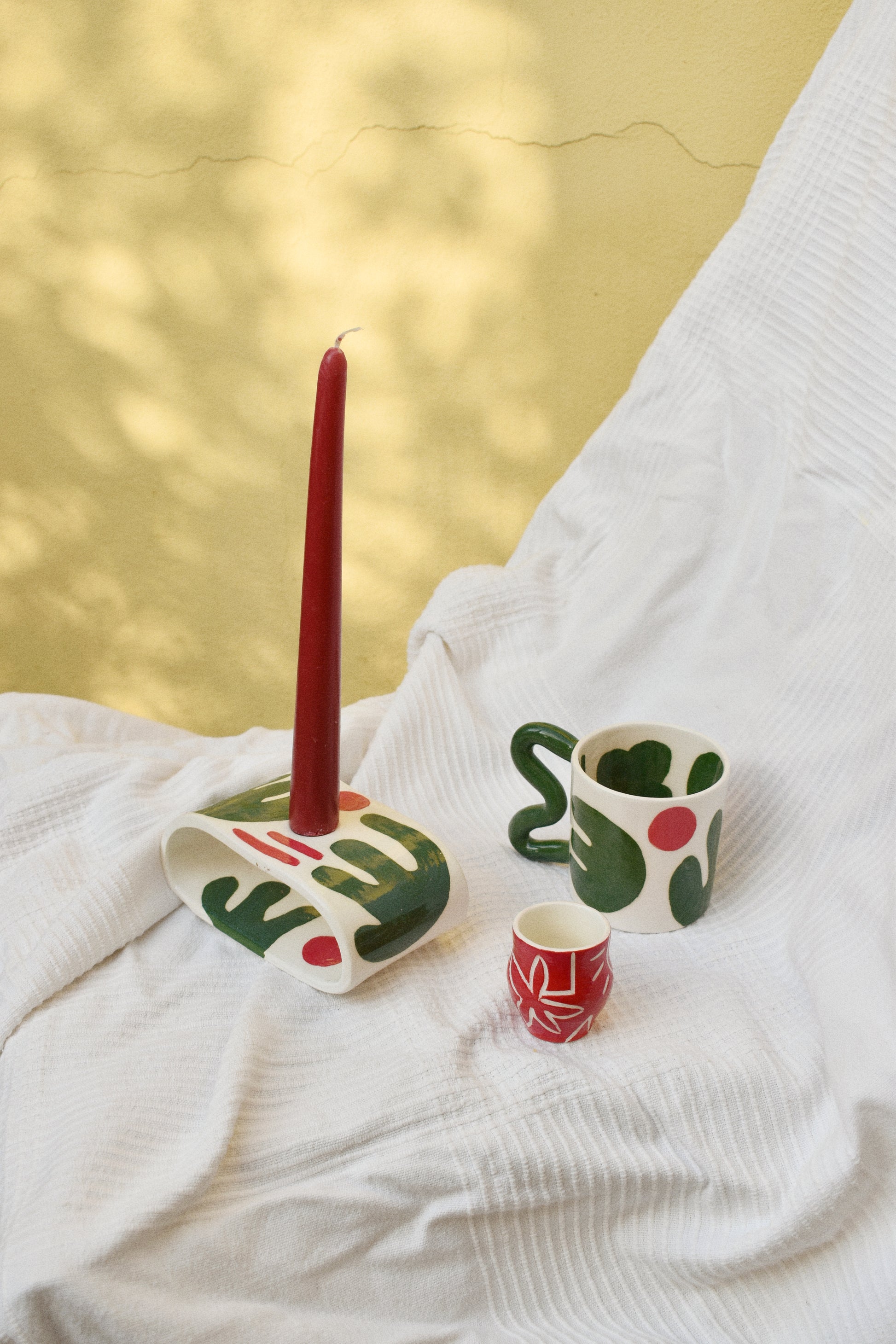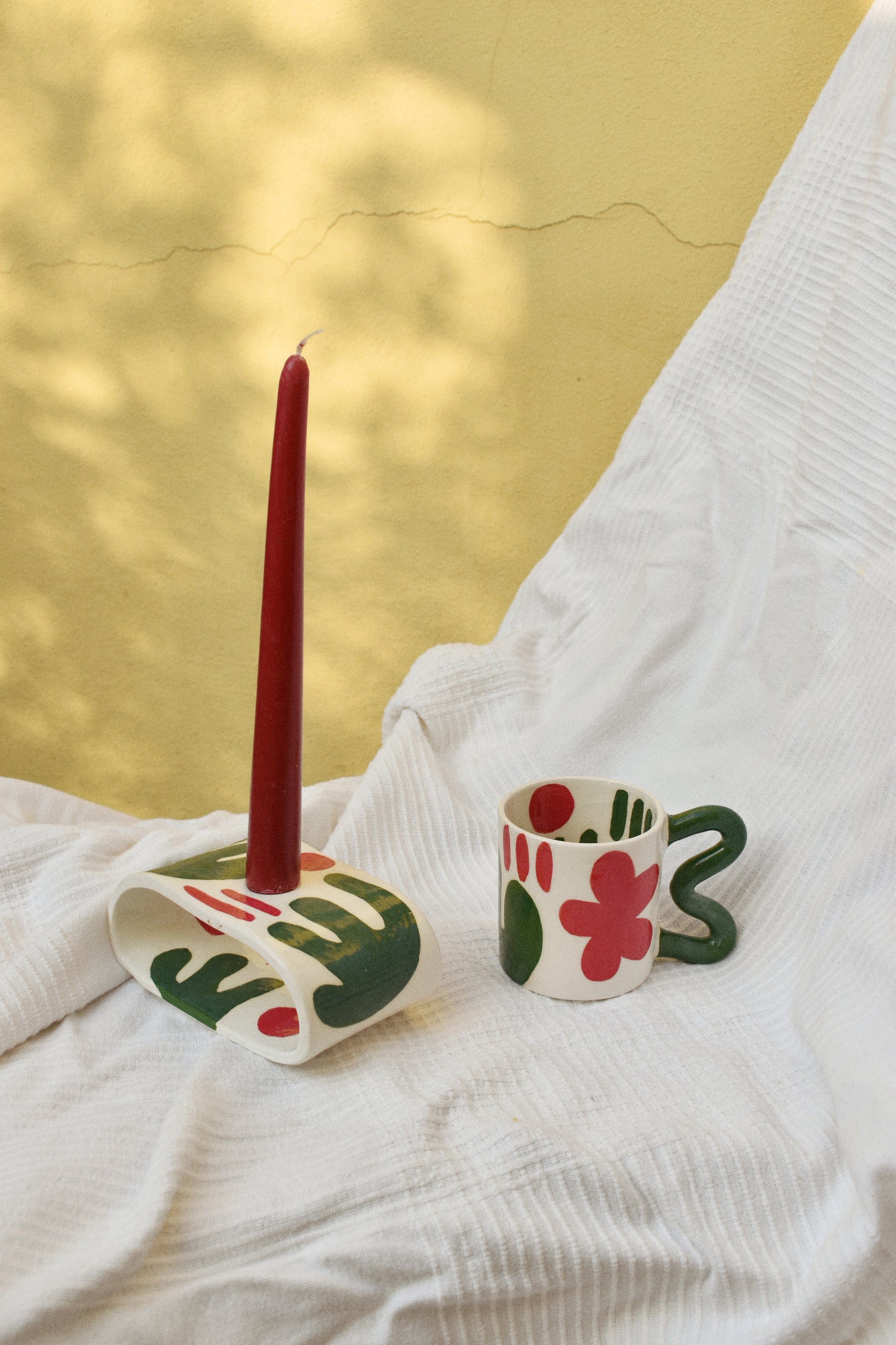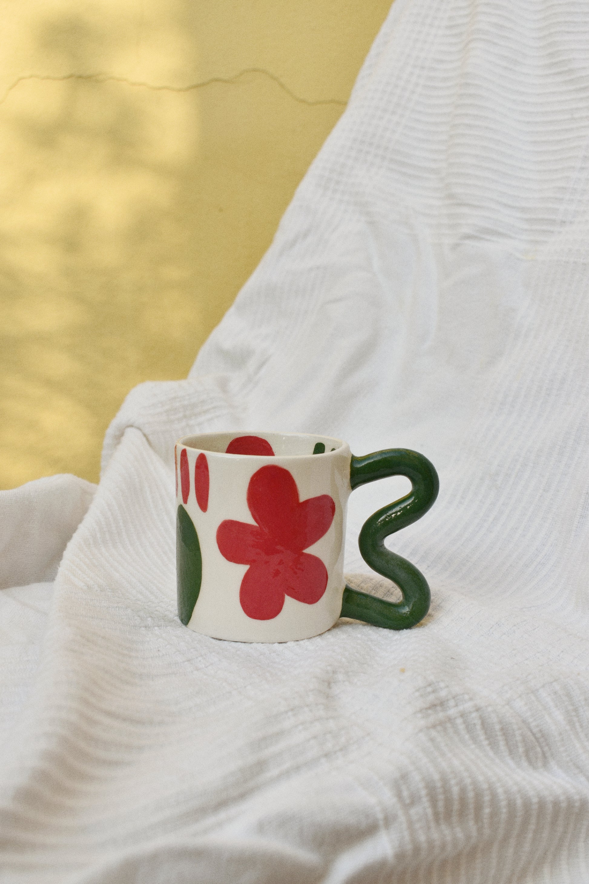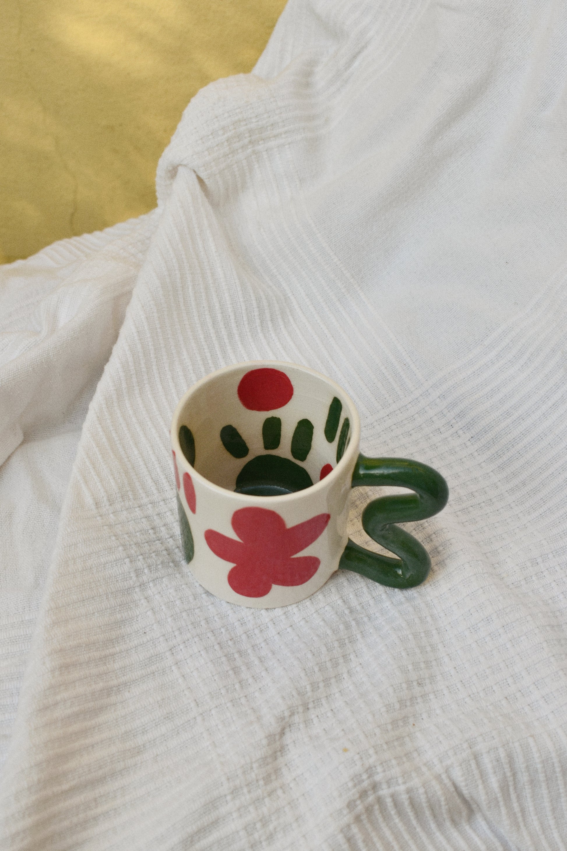 Tazza in terraglia bianca decorata a mano