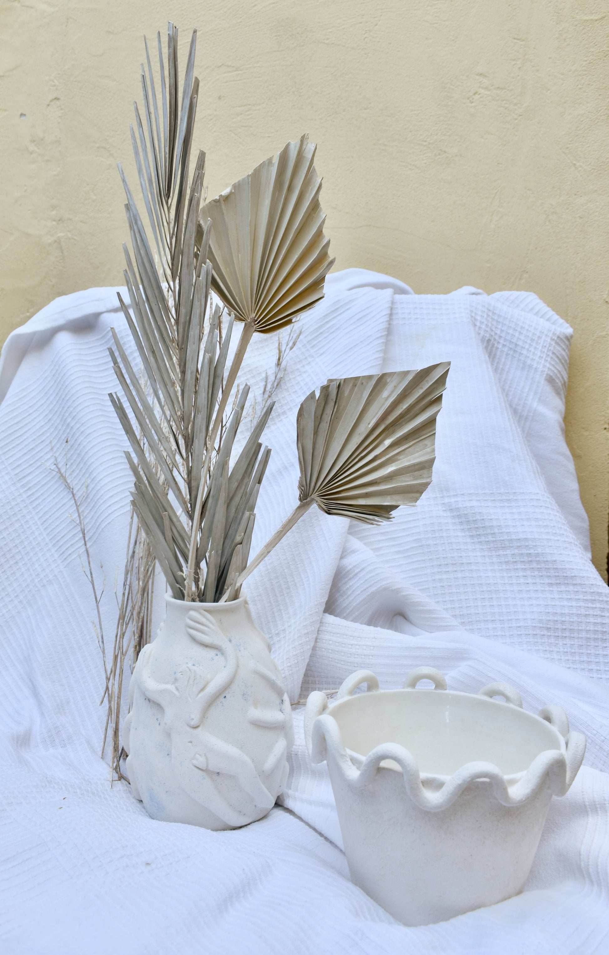 Vaso per fiori in terraglia bianca smaltato all'interno